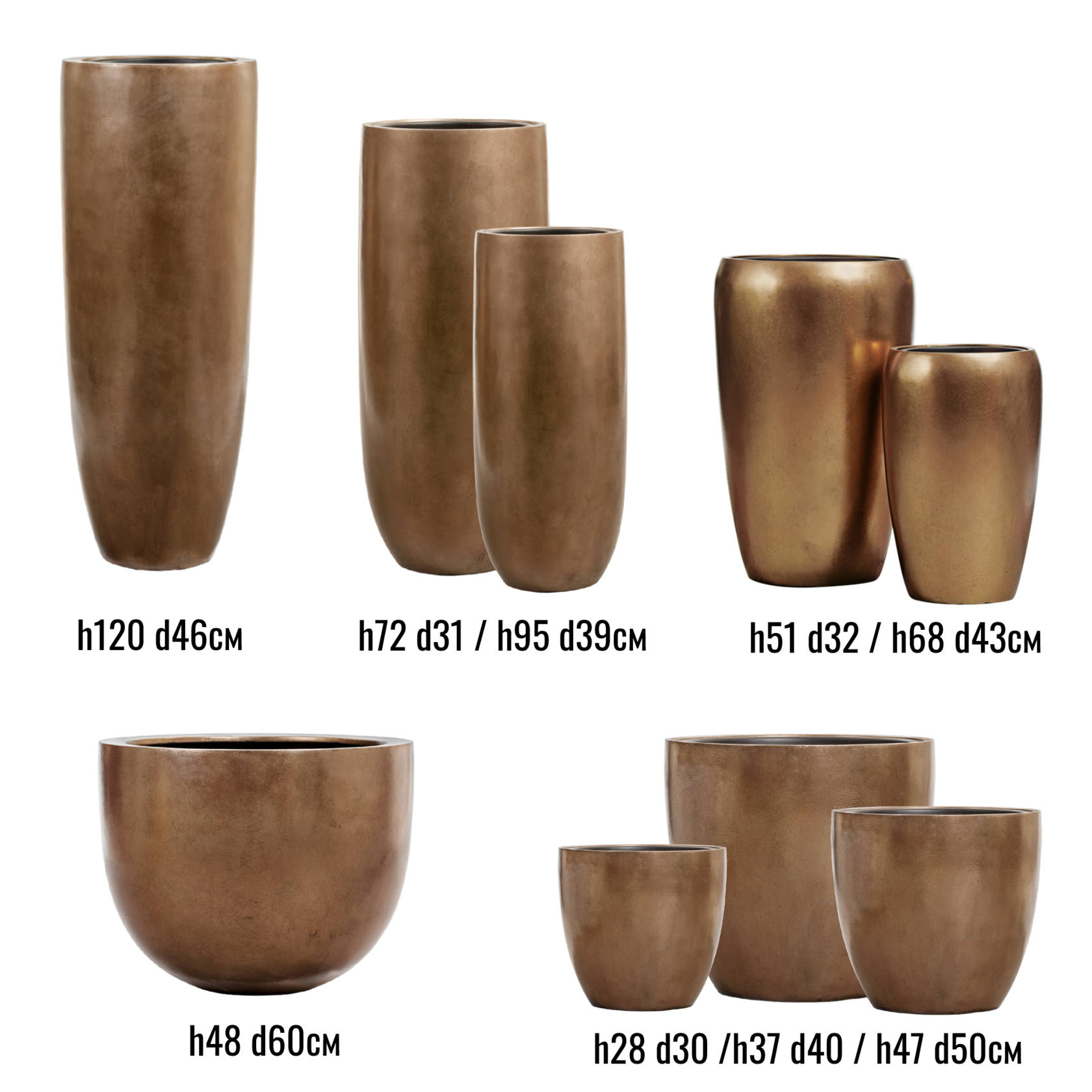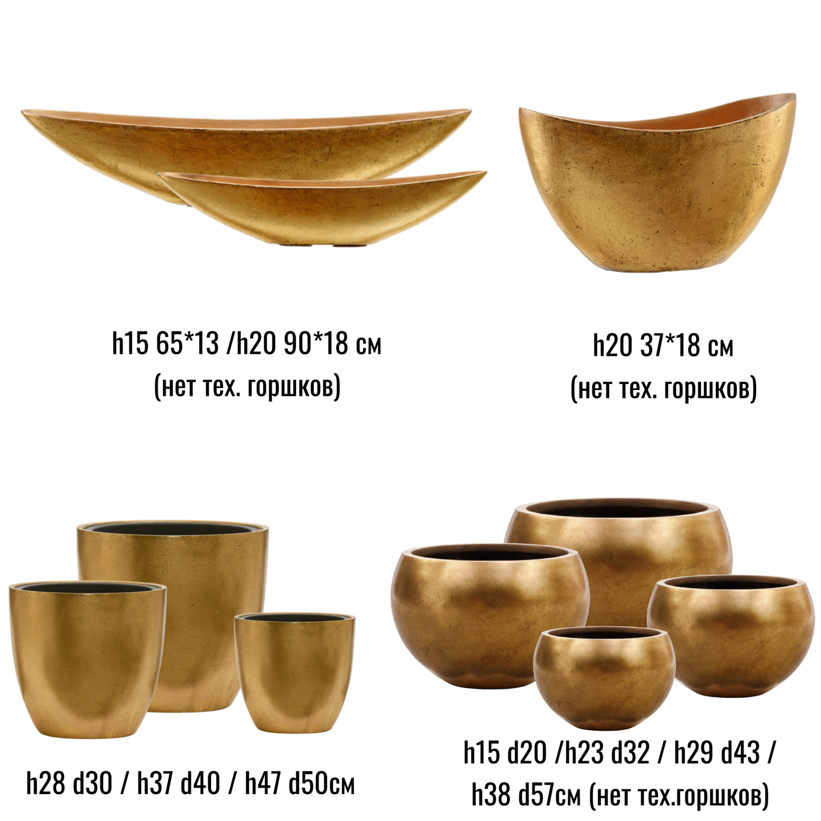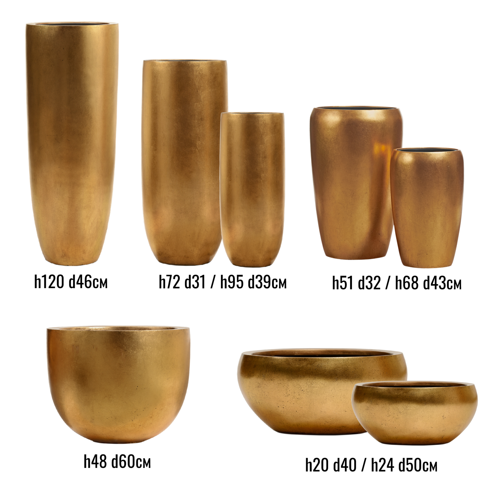 Описание: Интерьерные кашпо этой серии отличаются элегантностью и стилем. Прекрасно подходят как для современных, так и для классических интерьеров. Специальное покрытие наносится вручную тонкими слоями и создает эффект благородного металла Цвет матовое золото Материал полистоун Примечание: Кашпо комплектуется техническим горшком и подходит для засадки живых растений. Отдельно можно заказать систему автополива Размеры: Высота кашпо 60см, максимальный диаметр 31см